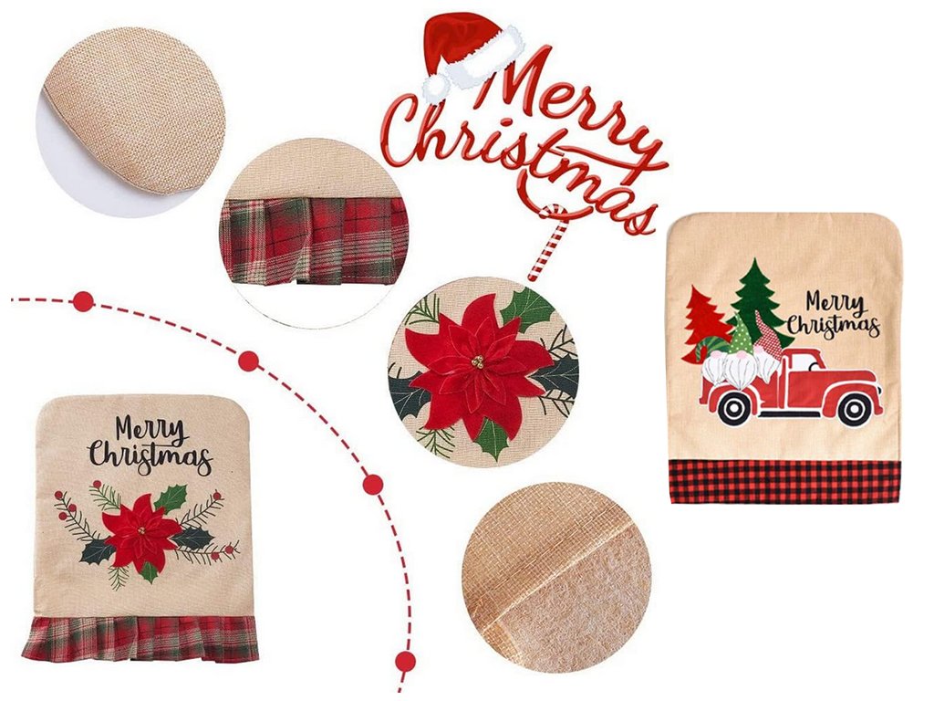Potah je vyroben z kvalitního materiálu, který se snadno čistí. Díky své univerzální velikosti se hodí na většinu židlí a vánoční motiv dodá interiéru veselou atmosféru. Je skvělou dekorací pro štědrovečerní večeře, vánoční večírky nebo každodenní vánoční večeře.