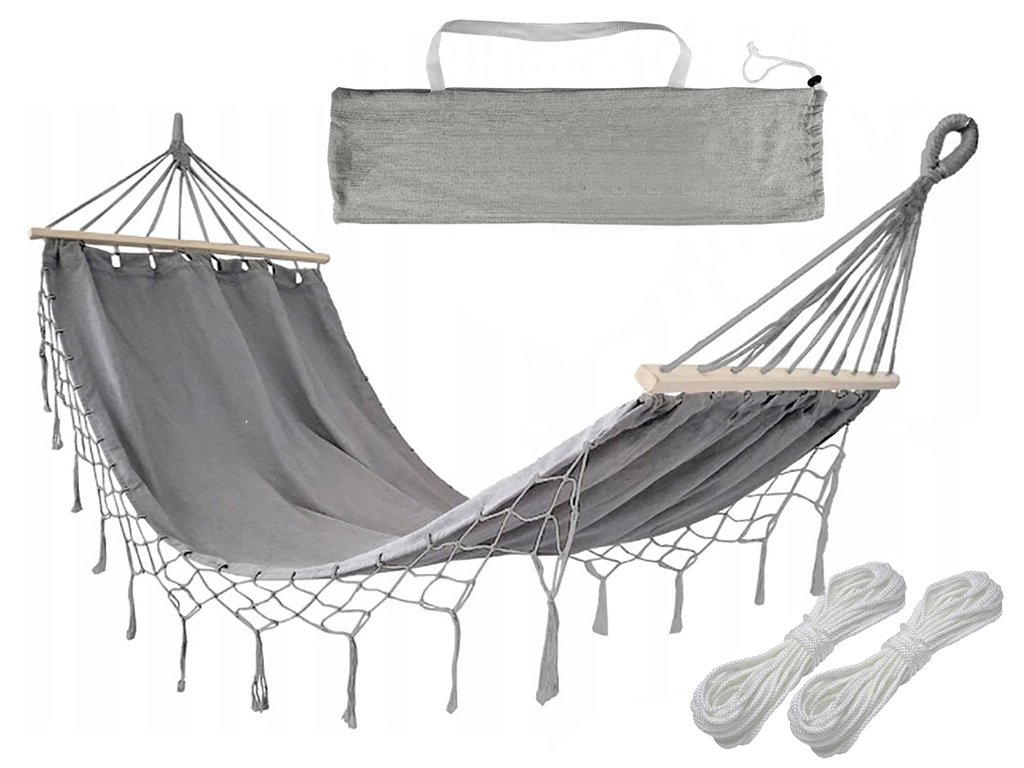 je ideální věcí pro všechny, kteří rádi tráví svůj volný čas v přírodě. Stačí přivázat oba konce houpací sítě ke stromům nebo pevným sloupkům a užívat si pohodlí. Součástí sady jsou dvě šňůry, pomocí kterých můžeme houpací síť upevnit. Můžete si v ní například číst knihu a přitom se jemně pohupovat v měkké houpací síti.